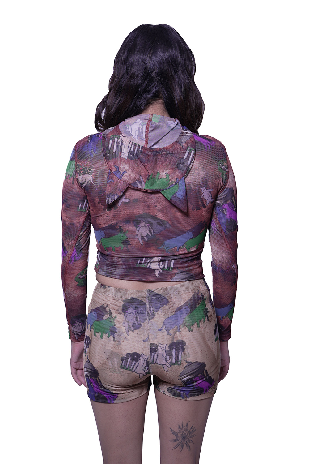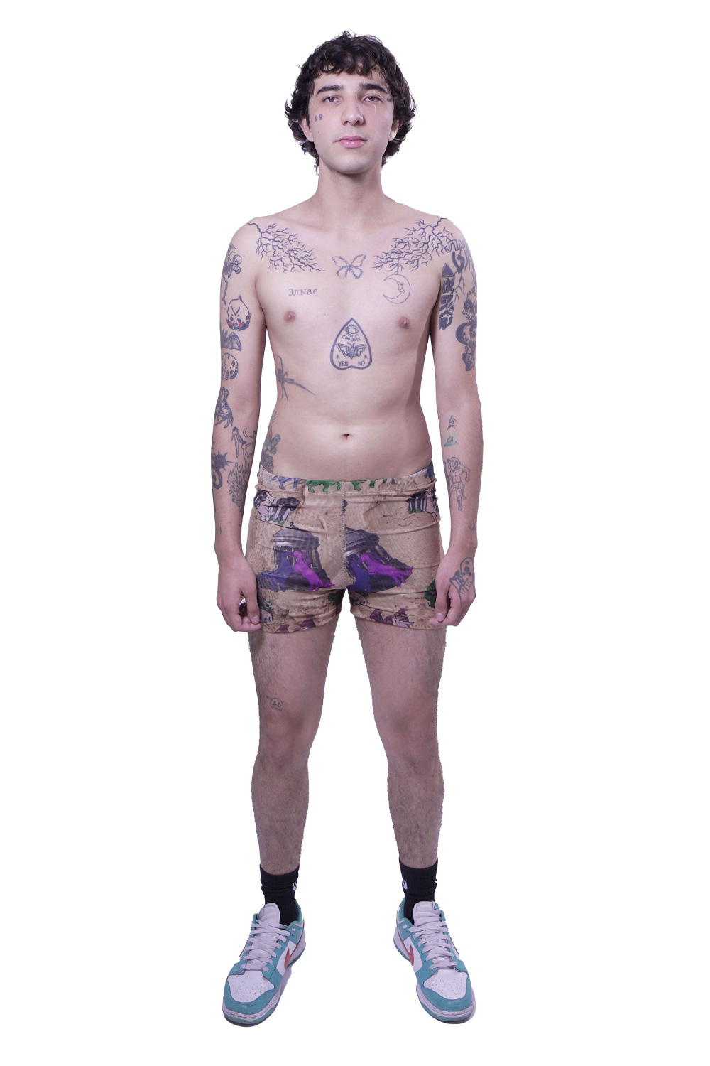 Bikers estampados; semitransparentes; tiro corto y cintura elástica. Cosido con costura flat.